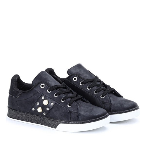 Czarne tenisówki z perełkami i cyrkoniami Emilia - Obuwie