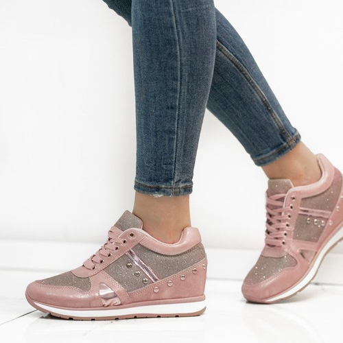 Różowo - złote sportowe buty na krytym koturnie Grina - Obuwie