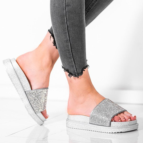 • Niesamowicie wygodne srebrne klapki na gumowej podeszwie. Paseczek pokryty cyrkoniami. Świetnie wkomponują się w letnią stylizację każdej kobiety!