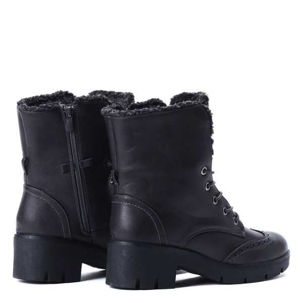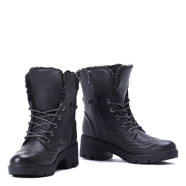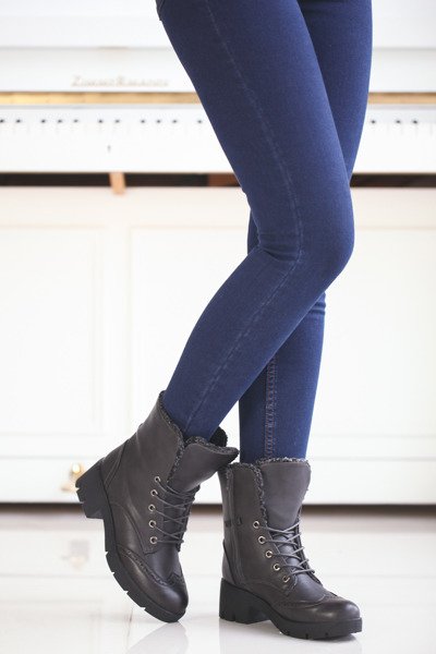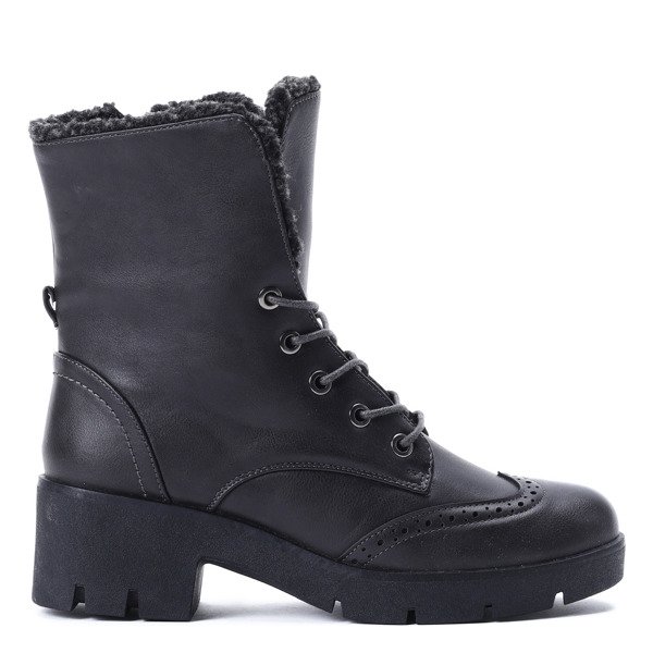 Ciemnoszare traperki z ażurowaniem - Obuwie