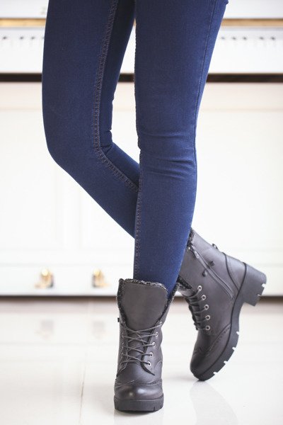 - Buty komfortowe i stabilne. Wysokie traperki z ekokóry doskonale opinają nogę co sprawia, że są bardzo komfortowe. Stylowy wygląd- inspirowany oksfordkami. Ażurowy nosek.