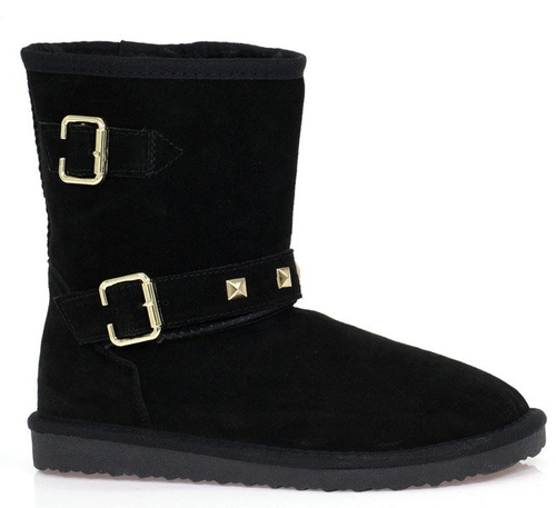 - Klasyczne, proste mukluki z wyjątkowo cieplutkim futerkiem. Cholewka zdobiona paskami z klamrami oraz ćwiekami. Idealne dla Pań, które cenią sobie komfort i wygodę. Gumowa, gruba podeszwa. Cholewka wsuwana- bez zapięcia.