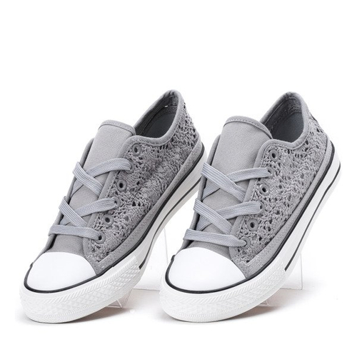 - Trampki sznurowane wykonane z tkaniny w kolorze szarym. Obuwie damskie jest doskonałym dodatkiem do wielu letnich stylizacji dzięki klasycznemu fasonowi oraz plecionej cholewce, która dostarczy komfortu podczas upalnych dni!