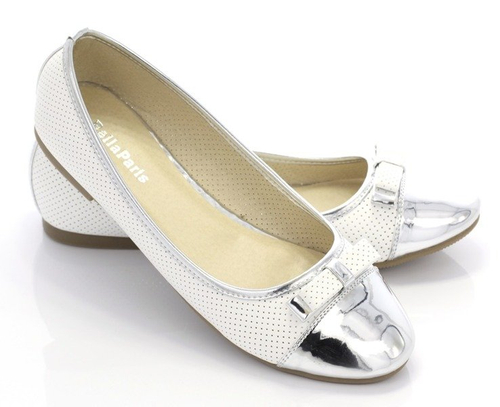 - Balerinki z okrągłym, metalicznym czubkiem ozdobione kokardką przy nosku. Wykonane z ażurkowej,ekologicznej skóry.