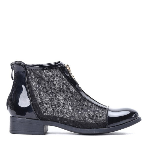 - Unikatowe botki wykonane z eko skóry lakierowanej oraz koronkowego materiału. Pasują do wielu niespotykanych stylizacji. Idealne dla modnej kobiety.