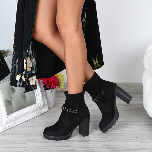 - Niepowtarzalne botki z paskiem na wysokości kostki ozdobionym ćwiekami. Model wykonany z zamszu na stabilnym słupku. Idealne do kobiecych stylizacji. Solidnie wykonane i bardzo wygodne.