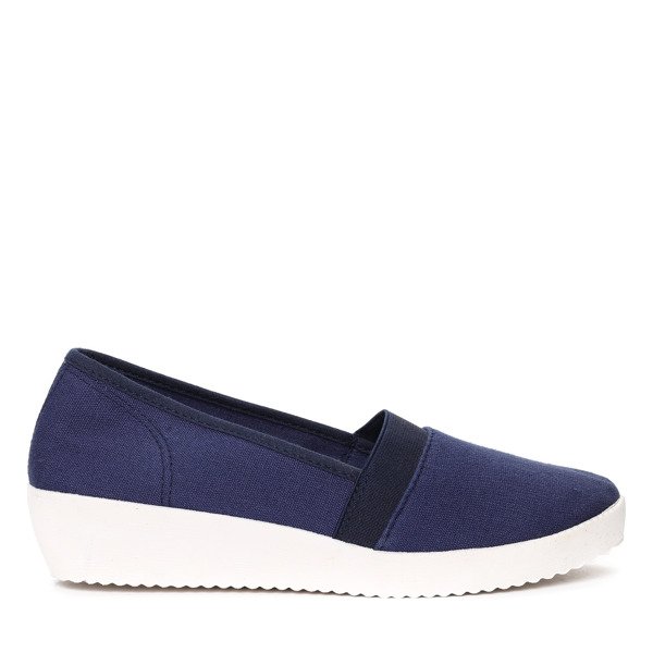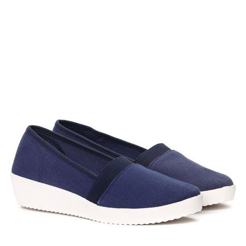- Stílusos balerinák szövetből készült ékeken. A cipő 5 cm -es ékkel rendelkezik. Klasszikus modell, amely sok stílushoz illeszkedik.