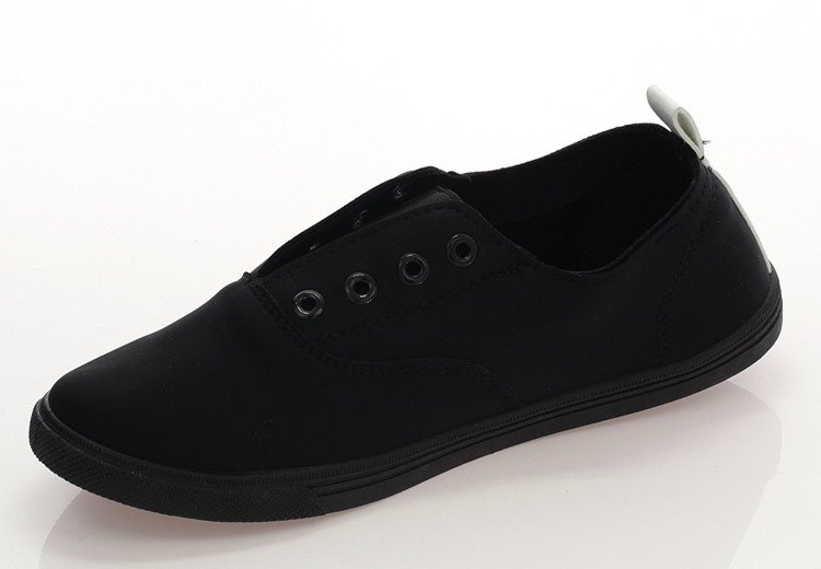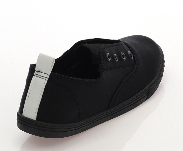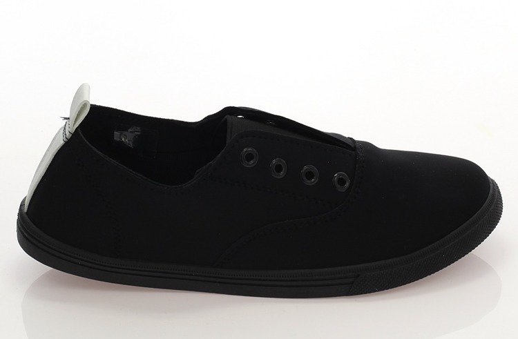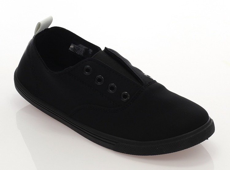- Klasyczne sportowe tenisówki na płaskiej podeszwie. Materiał wykonania cholewki oraz wkładki to tkanina w czarnym kolorze. Tenisówki są świetnym dodatkiem do sportowej odzieży!