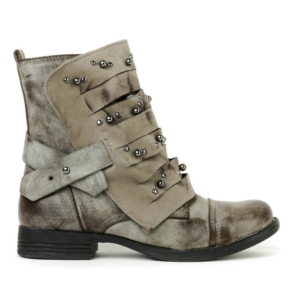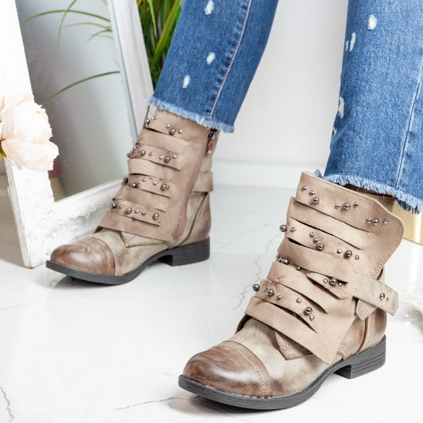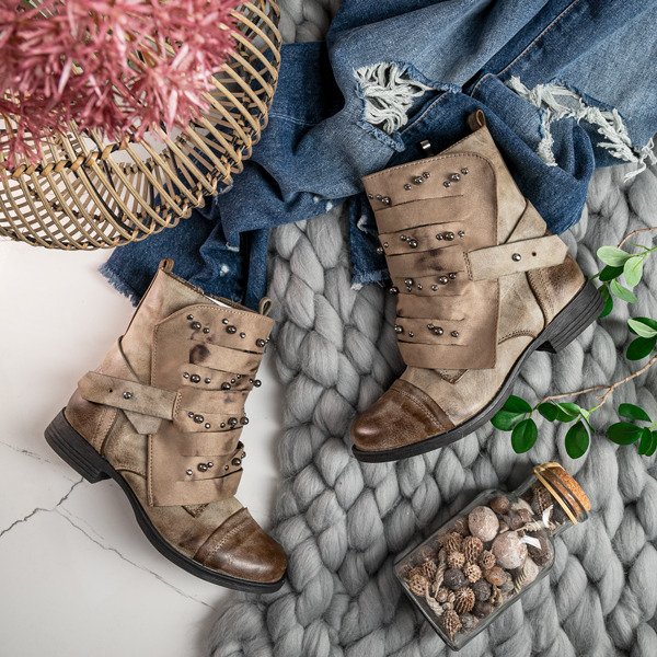 Botki z dżetami w kolorze khaki Lenia - Obuwie