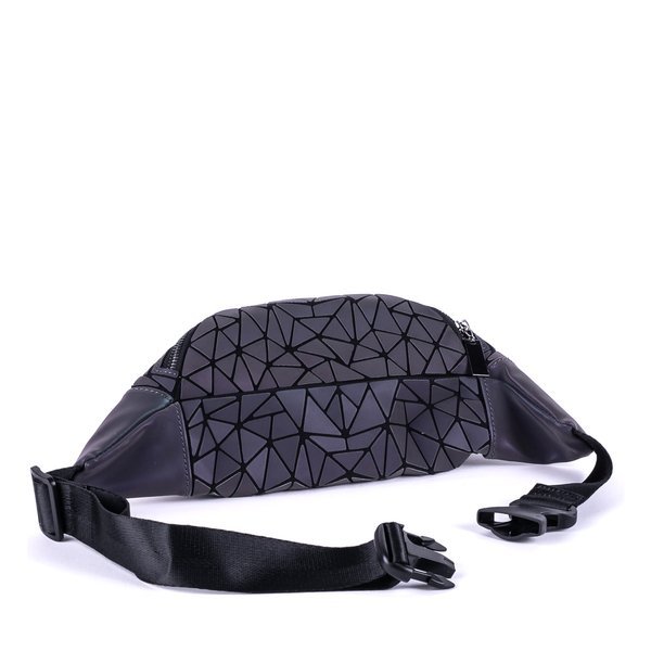- Wielokolorowa torebka typu nerka wykonana z połączenia tkaniny oraz tworzywa skóropodobnego. Materiał ozdobiony stylowym wzorem geometrycznym. Dodatkowo w środku posiada małą kieszonkę zapinaną na suwak.