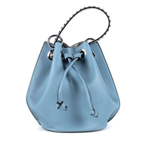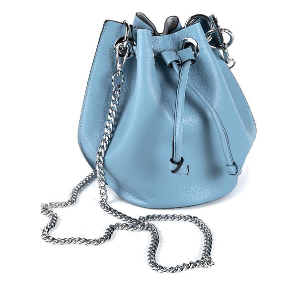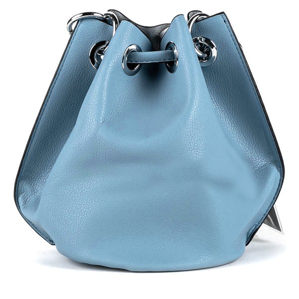 - Elegancka torebka na ramię, wykonana z eko-skóry w kolorze niebieskim. Torba posiada ozdoby w formie srebrnych dżetów na pasku. Dodatkowym atutem jest odpinany długi srebrny łańcuszek. Produkt posiada jedną dużą kieszeń zawiązywaną paskiem z eko-skóry.
