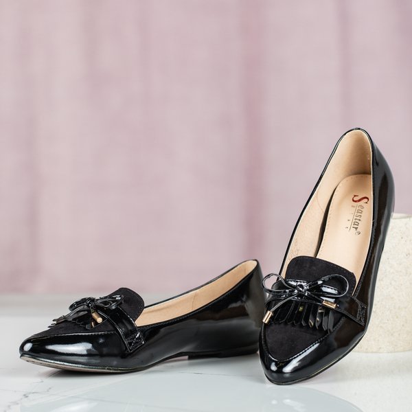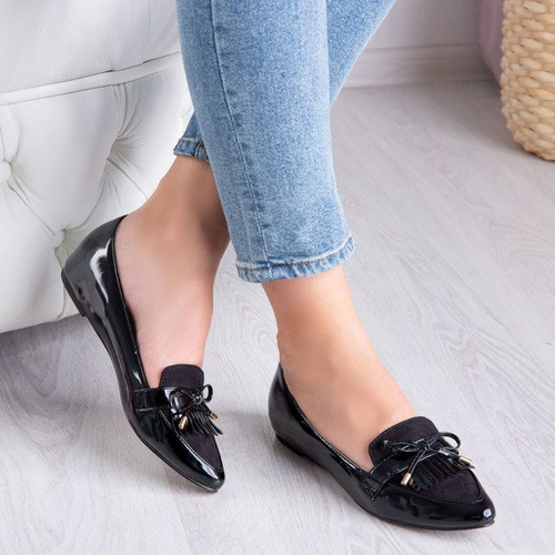 Czarne lakierowane mokasyny z migdałowym noskiem Mulli - Obuwie