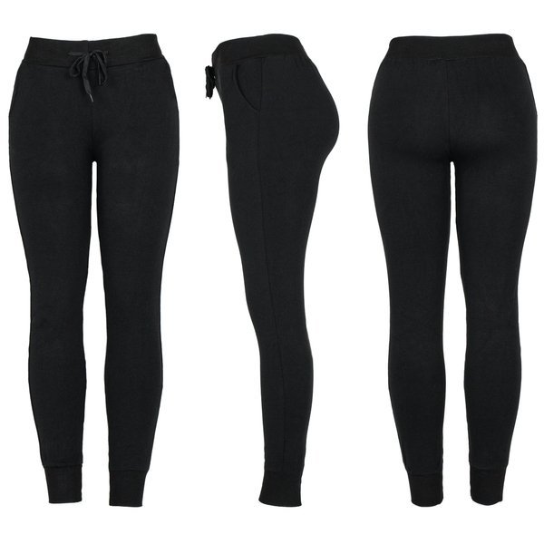 - Klasyczne damskie spodnie dresowe. Materiał wykonania to tkanina bawełniana w czarnym kolorze. Dres posiada elastyczną gumę w pasie oraz wiązanie. Z przodu dwie kieszenie. Wygodne i miłe w dotyku! UWAGA: Dokładność pomiaru (+/-) 1 cm.