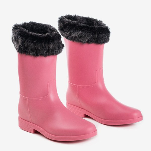 Różowe matowe kalosze z futerkiem Gumi - Obuwie