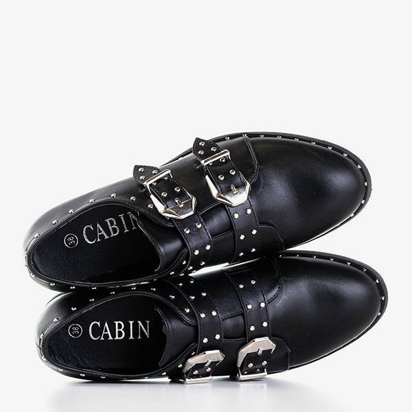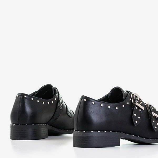 Czarne półbuty damskie z dżetami Queen - Obuwie