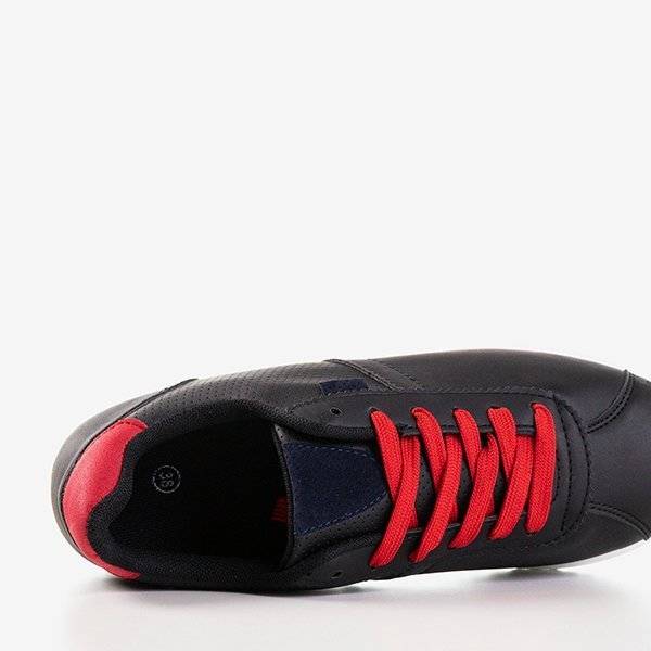 OUTLET Czarne sportowe buty damskie z czerwonymi wstawkami Dramena - Obuwie