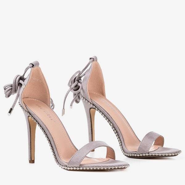 OUTLET Szare wiązane sandały na wyższej szpilce Taya - Obuwie