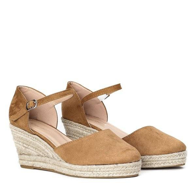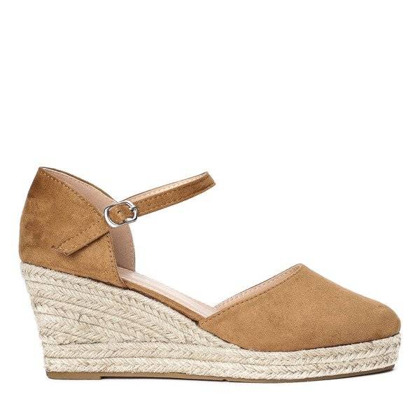 OUTLET Brązowe espadryle na koturnie Chia - Obuwie