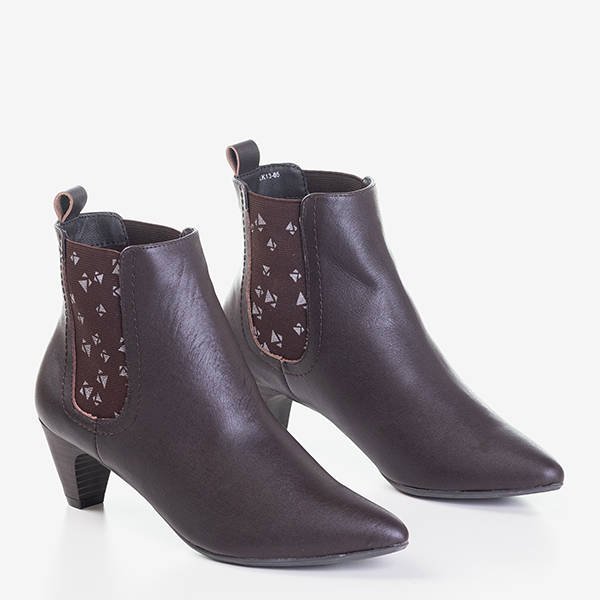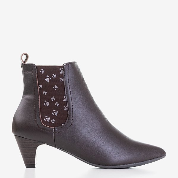 Ciemnobrązowe damskie botki na słupku z geometrycznymi wzorkami Alynca - Obuwie
