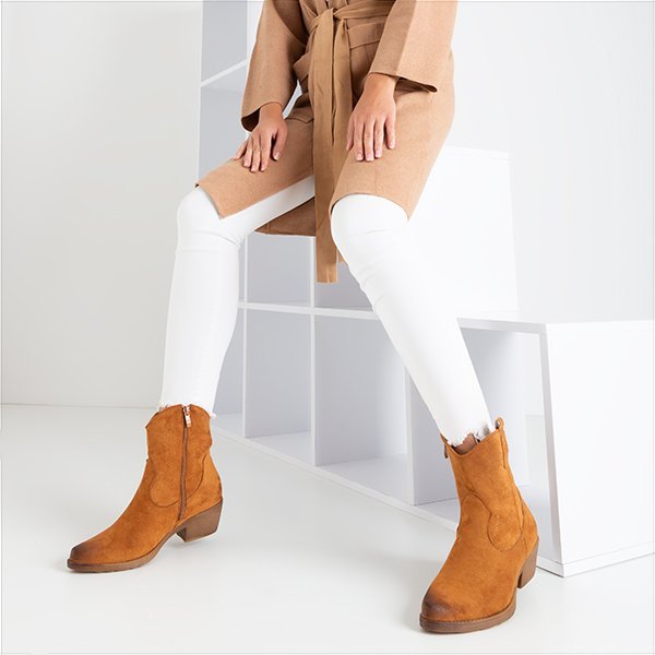 Brązowe botki a'la kowbojki Sahara - Obuwie