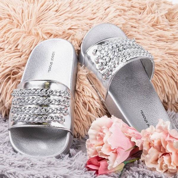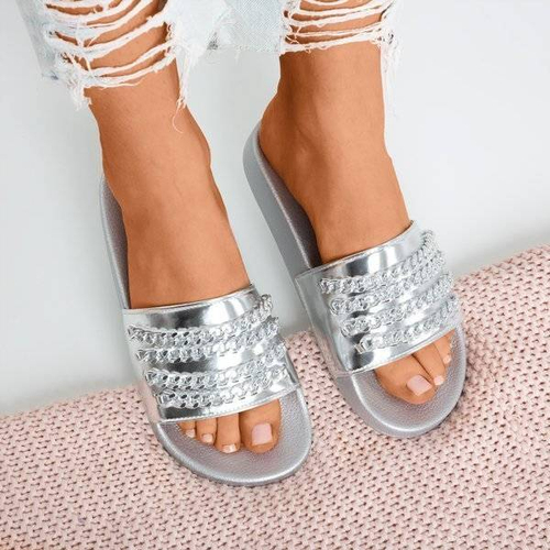 OUTLET Ezüst papucs lánccal Slivien - Lábbeli