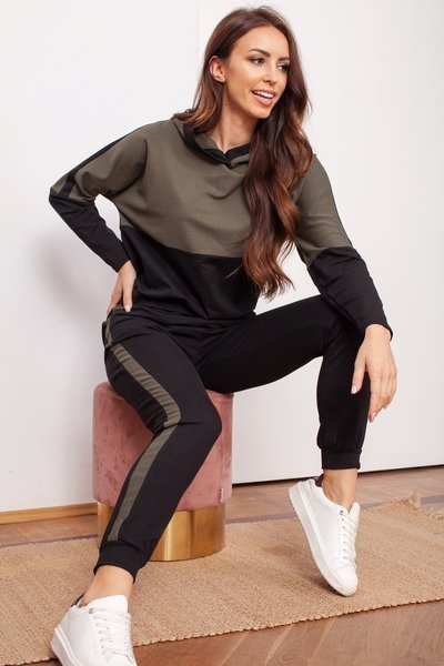 - Divatos női tréningruha szett pamut anyagból. A modell rendelkezik: nadrágokkal, derékon és lábakon rugalmas szalaggal, valamint hosszú ujjú pulóverrel és kapucnival. Csíkokkal díszített szett, tökéletes sportruhákhoz. MEGJEGYZÉS: Mérési pontosság (+/-) 1