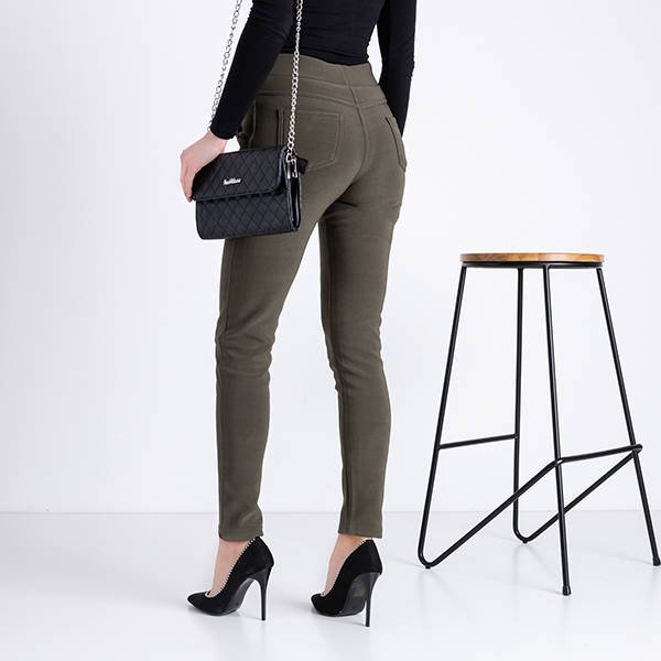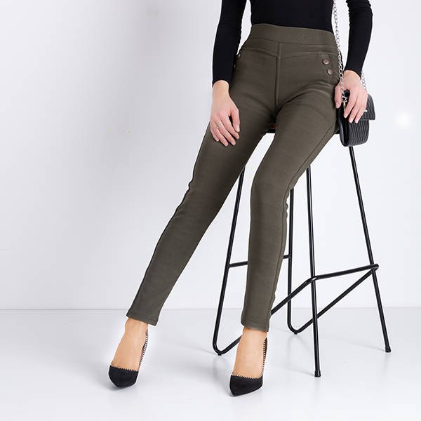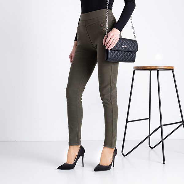 - Elegáns, zöld, szigetelt dugók. Anyaga rugalmas szövet. A modell derekán rugalmas szalag található, gombokkal díszítve. Zsebek vannak elöl és hátul. MEGJEGYZÉS: Mérési pontosság (+/-) 1 cm.