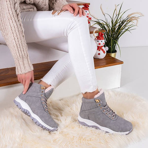 • Női szürke túracipő lapos fedéllel. Felsőrésze ökológiai nubukbőrből készült, fűzővel kötött. Bundával melegedett. Tökéletes hideg, aktív napokra. MEGJEGYZÉS: a termék talpa kissé elszíneződhet.
