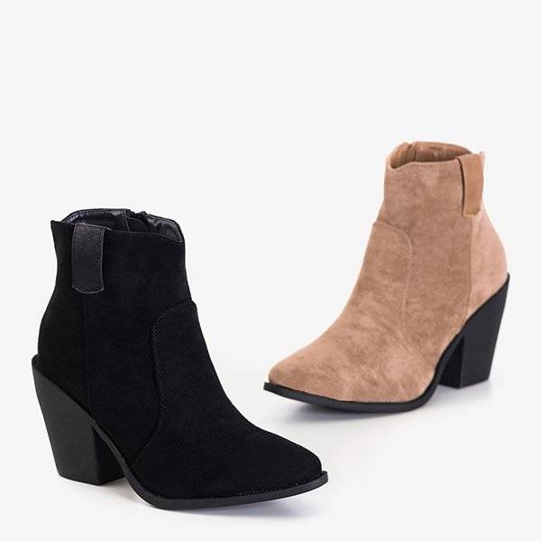- Elegáns női cowboy csizma ökológiai velúrból, barna színben. Modell mandula orrával és oldalsó cipzárral. Megjegyzés: a termék enyhe mennyiségű ragasztót tartalmaz az anyagon.