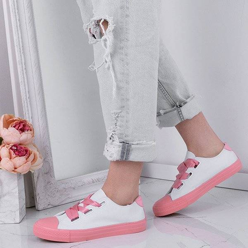 OUTLET Lila szalaggal kötött fehér és rózsaszín cipők - Lábbeli