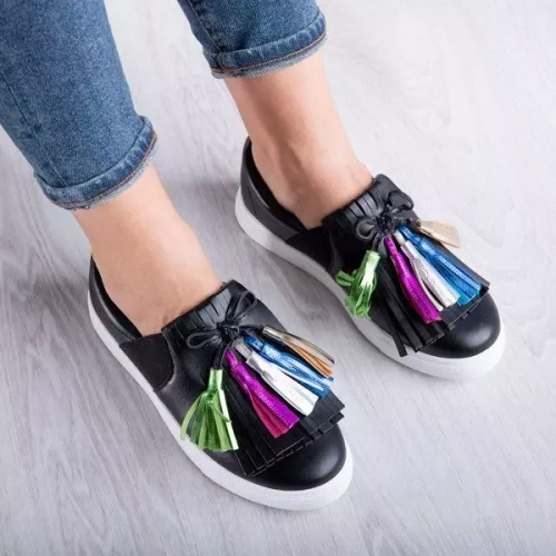 OUTLET Fekete sportcipő Osederra rojtokkal - Lábbeli