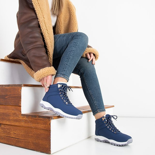 Szigetelt ökobőr női túracipő sötétkék színben Filis - Lábbeli