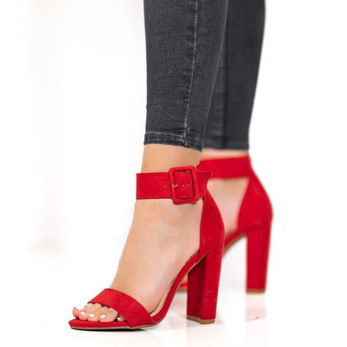 OUTLET Piros szandál egy oszlopon, rögzítéssel Katie - cipő