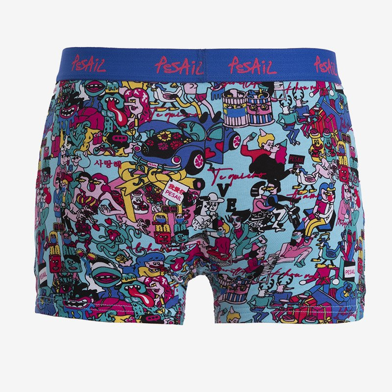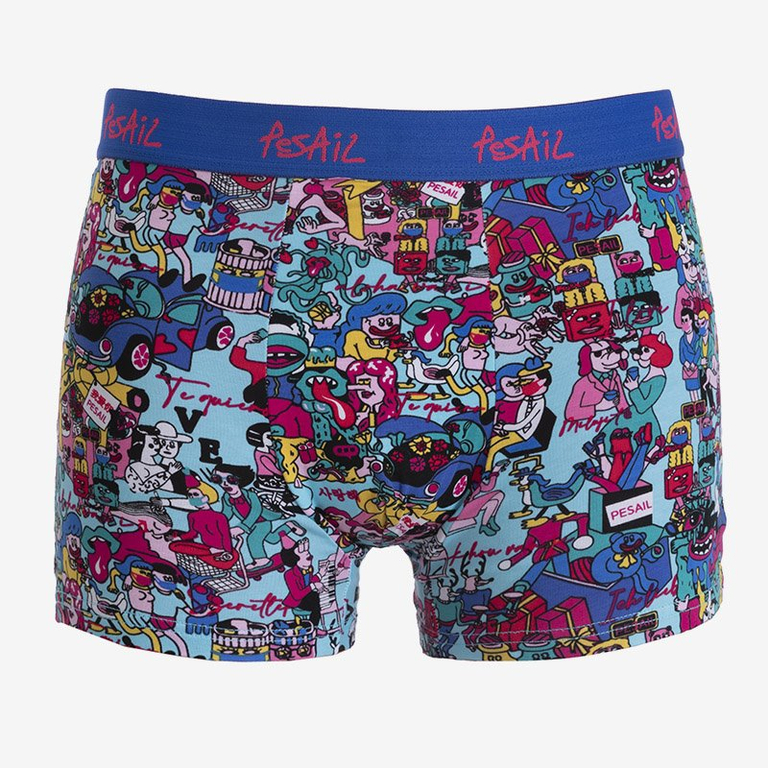 • Férfi boxer rövid pamut anyagból, színes nyomtatással. Derékon rugalmas gumi. Kényelmet nyújtanak a mindennapi használat során.