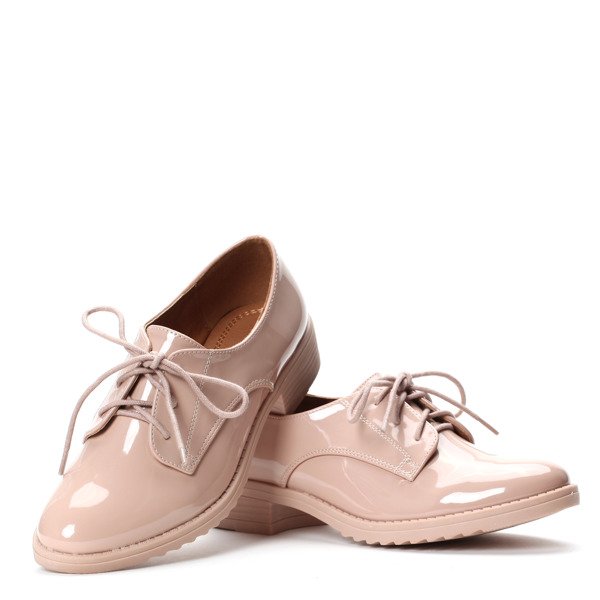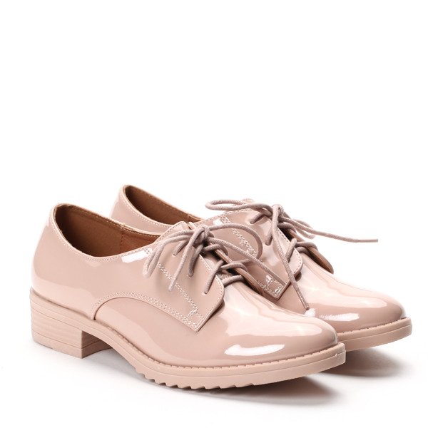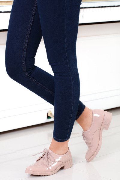 Różowe, wiązane oksfordki - Obuwie