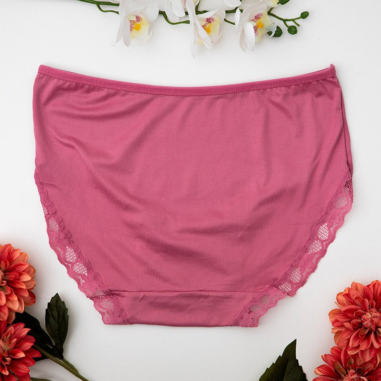 - Klasszikus női rövidnadrág, bambuszszálból, a következő színekben: világos rózsaszín, rózsaszín és türkiz. A bugyi széle csipkével van kikészítve. A vékony, lapos derékrész biztosítja a kényelmet a nap folyamán. MEGJEGYZÉS: Mérési pontosság (+/-) 1 cm.