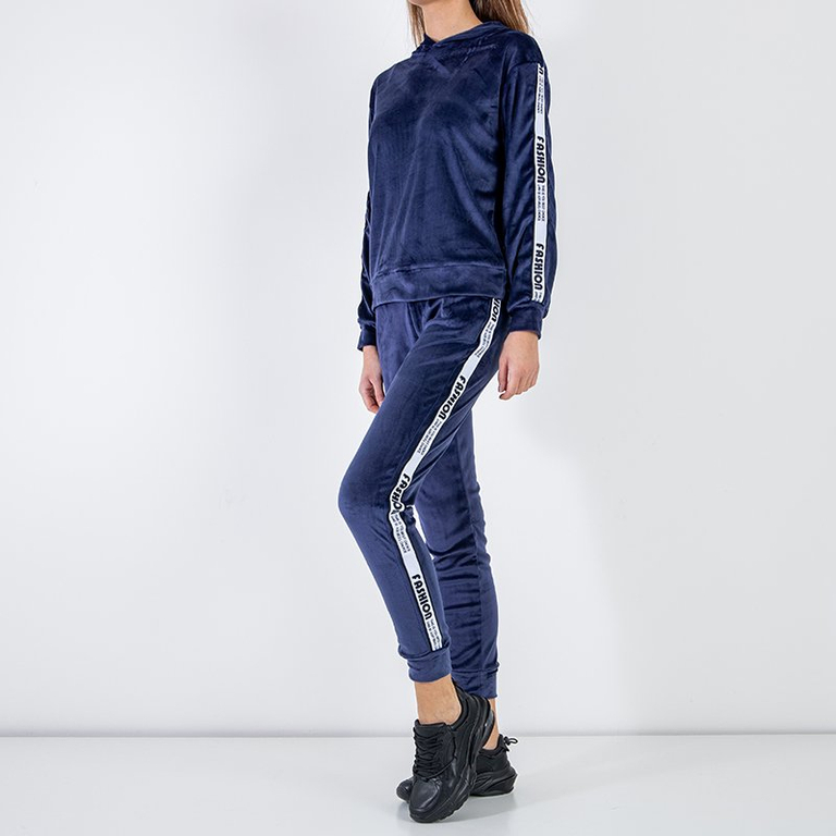 Női sötétkék pulóver szett csíkokkal - Ruházat