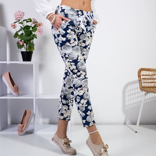 - Női 7/8-os hosszúságú nadrág, szövetből készült, virágos nyomtatással. Magas derekú modell, rugalmas derékpánttal. MEGJEGYZÉS: Mérési pontosság (+/-) 1 cm. A méretek laposak.