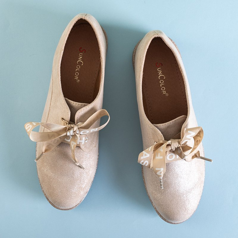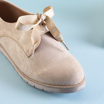 Bézs színű női cipő, szalaggal fűzve Ninette - cipő