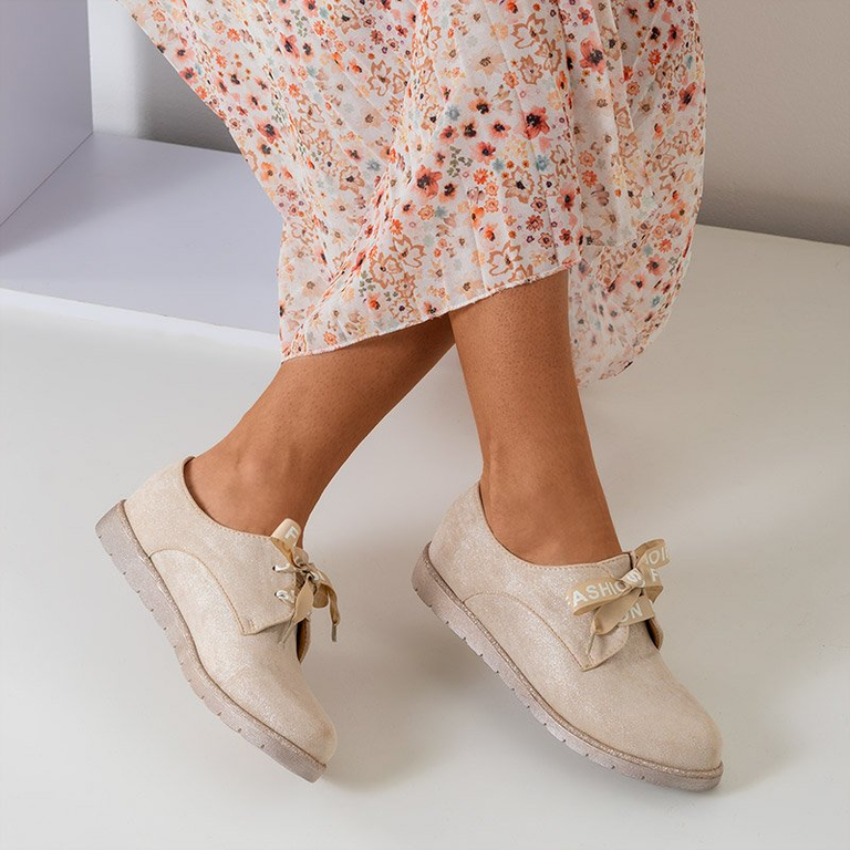 Bézs színű női cipő, szalaggal fűzve Ninette - cipő