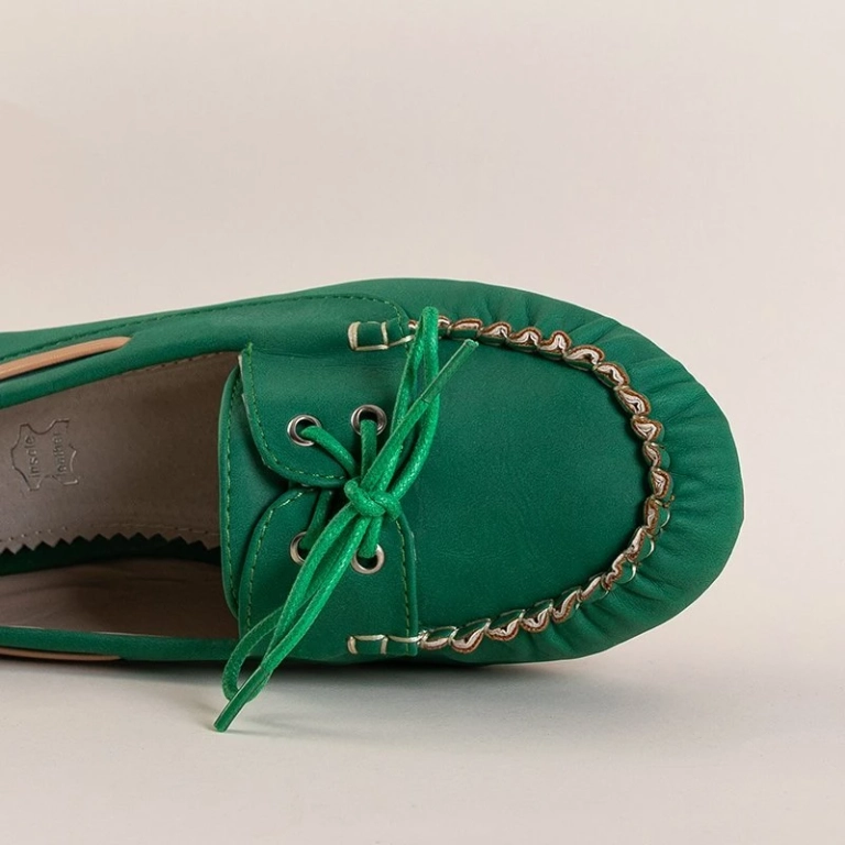 OUTLET Zöld női mokaszin Norami kötéssel - Cipő
