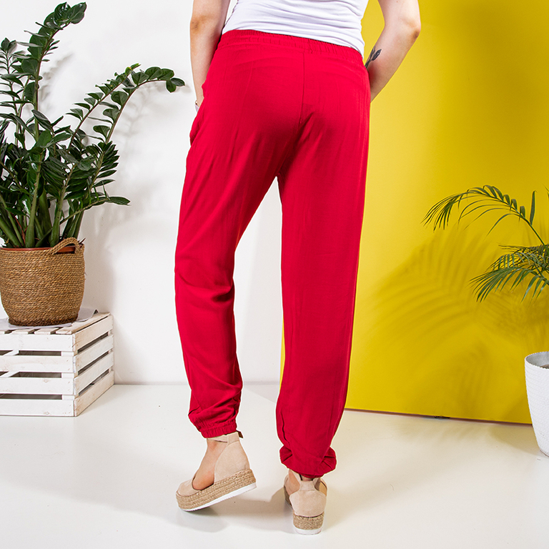 Piros női PLUS SIZE szövetnadrág - Ruházat