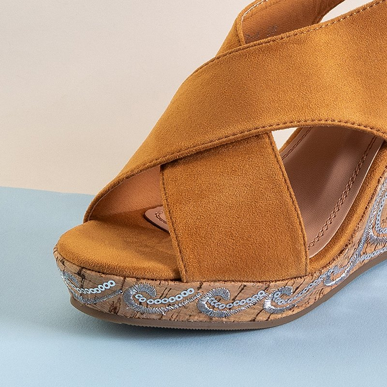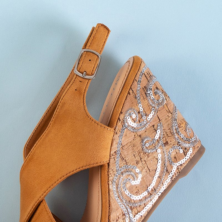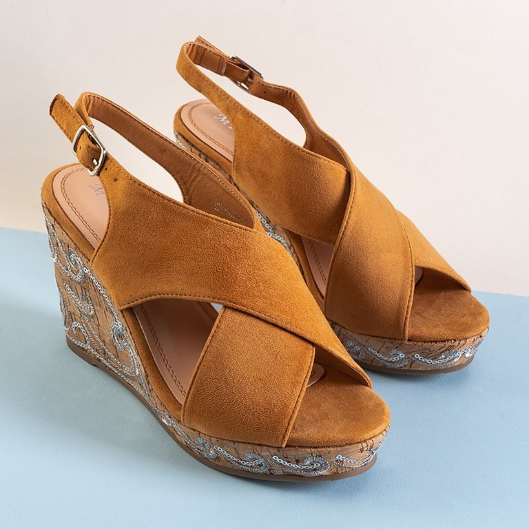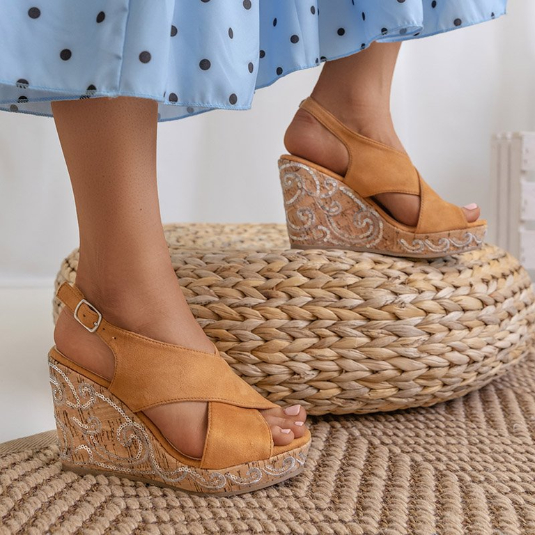Világosbarna női ék szandál flitterekkel Terisa - Lábbeli