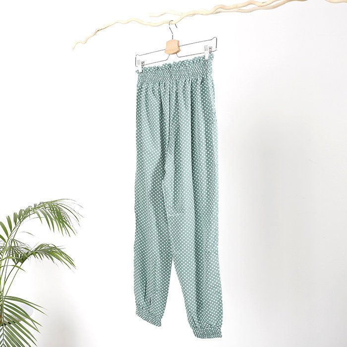 - Női könnyű pöttyös szövetnadrág magas pamut tartalmú szövetből. A modell rugalmas derékkal és lábakkal, díszpántokkal és 2 csúszó zsebbel rendelkezik. MEGJEGYZÉS: Mérési pontosság (+/-) 1 cm.