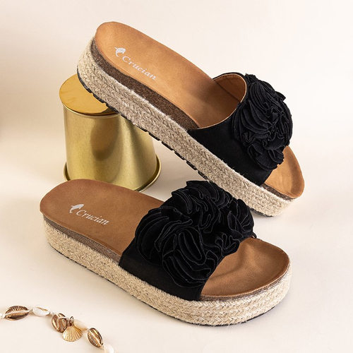 - Tökéletes női platformszandál, juta húrral díszítve. A heveder öko-velúr bőrből, a betét pedig öko-bőrből készül. Ezenkívül a modellt virágok díszítik. MEGJEGYZÉS: a modell talpán kiemelkedő húrok lehetnek.