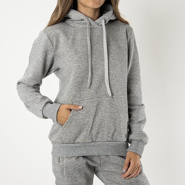 - Női szigetelt pulóver pamut és poliészter anyag kombinációjából. A modell a fej fölé illesztett, kapucnival és egy nagy zsebbel rendelkezik. Ideális a hidegebb évszakban. MEGJEGYZÉS: A mérési pontosság (+/-) 1 cm.