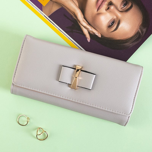 Szürke, nagy női pénztárca íjjal - Pénztárca