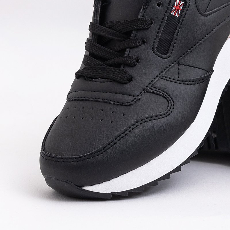 - Fekete női sportcipő ökológiai bőrből. A talpbetét anyaggal van bélelve. Modell csipkével felfelé. Tökéletes kiegészítő sportruházathoz.