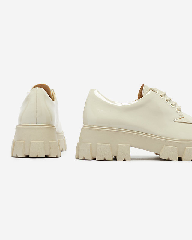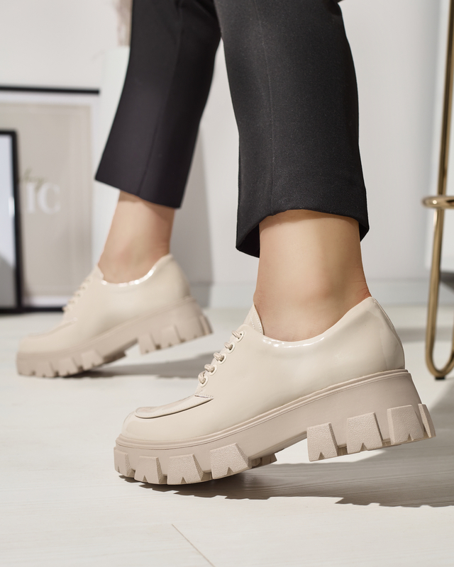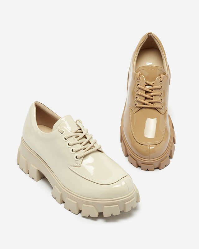 Női világos bézs lakkozott fűzős cipő Ginara - Cipő
