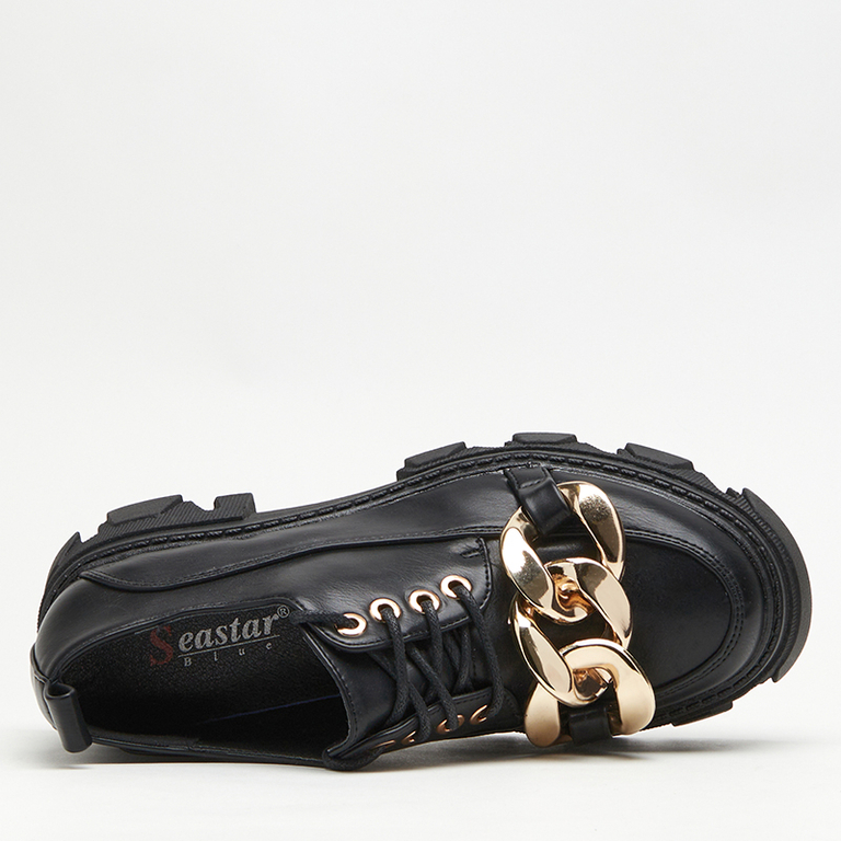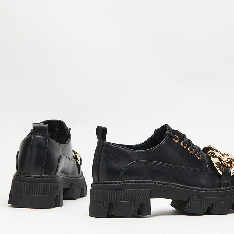 • Egyedi oxford cipő nőknek, ökológiai bőrből. Fűzős felső, arany elemmel díszítve. A talpbetét szintén ekológikus bőrből készült, a talpa gumiból készült. A modell jól fog működni elegáns stilizációkkal!